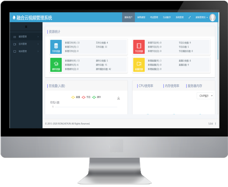 资源栏目分类管理,点播直播,播放排行。